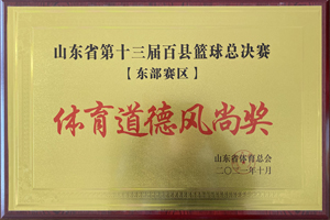 2021年10月,興業(yè)集團籃球隊榮譽“山東省第十三屆百縣籃球總決賽(東部賽區(qū))體育道德風(fēng)尚獎