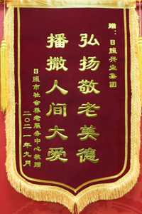 2021年9月,日照市社會養(yǎng)老服務(wù)中心贈予錦旗興業(yè)集團”播撒人間大愛,弘揚敬老美德“