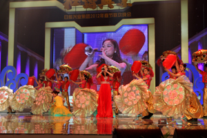 歌伴舞《和諧大家庭》唱出了全體興業(yè)人圍繞在集團領導班子周圍,和衷共濟、共謀發(fā)展的激情與和諧,也將晚會引入“和諧興業(yè)展龍圖”的篇章。社區(qū)的中老年朋友們自編自演的舞蹈《映山紅》形式歡快喜慶,展現了興業(yè)社區(qū)中老年人的良好精神風貌;興業(yè)進出口公司請來的三位漂亮的俄羅斯美女引爆全場激情,他們就是來自俄羅斯的組合“莫斯科女孩”,他們演唱新穎獨特,外形性感甜美,載歌載舞,她們演唱的《紅梅花兒開》、《SUPER
